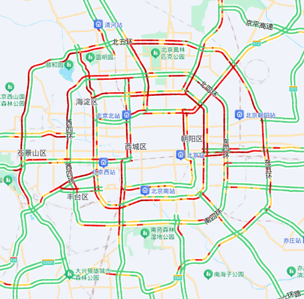 早高峰期间倍选网,城区主要环路,高速公路进城方向车流量大,易出现行驶缓慢情况。德胜门、西便门、广安门、劲松、莲花桥等区域压力较大;黑泉路、菜户营南路、西直门北大街、通惠河北路等联络线部分路段车流集中。